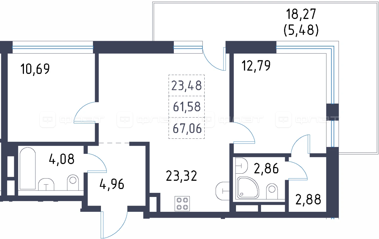 - 67.06/23.48/23.32 м²