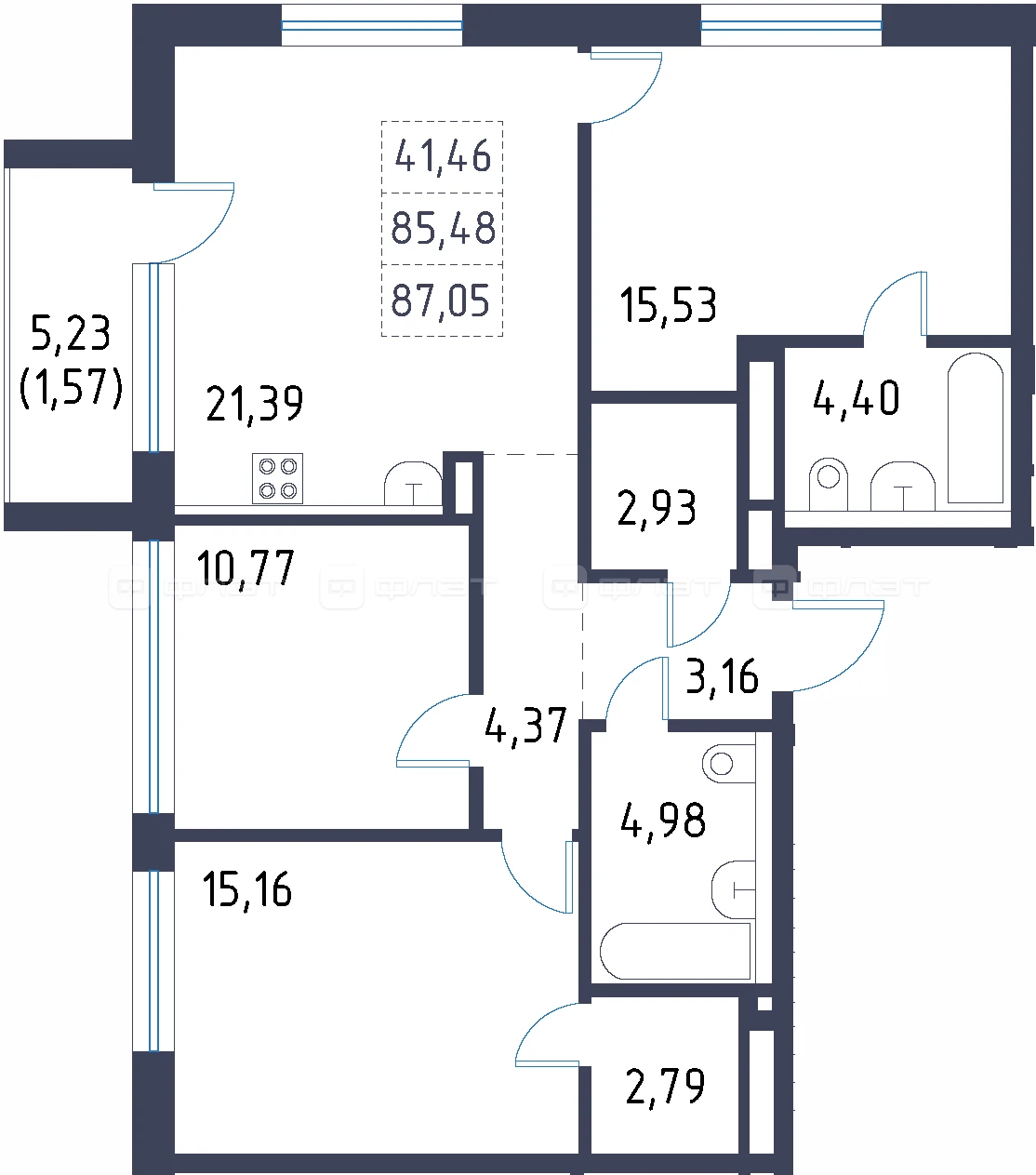 - 87.05/41.86/21.39 м²