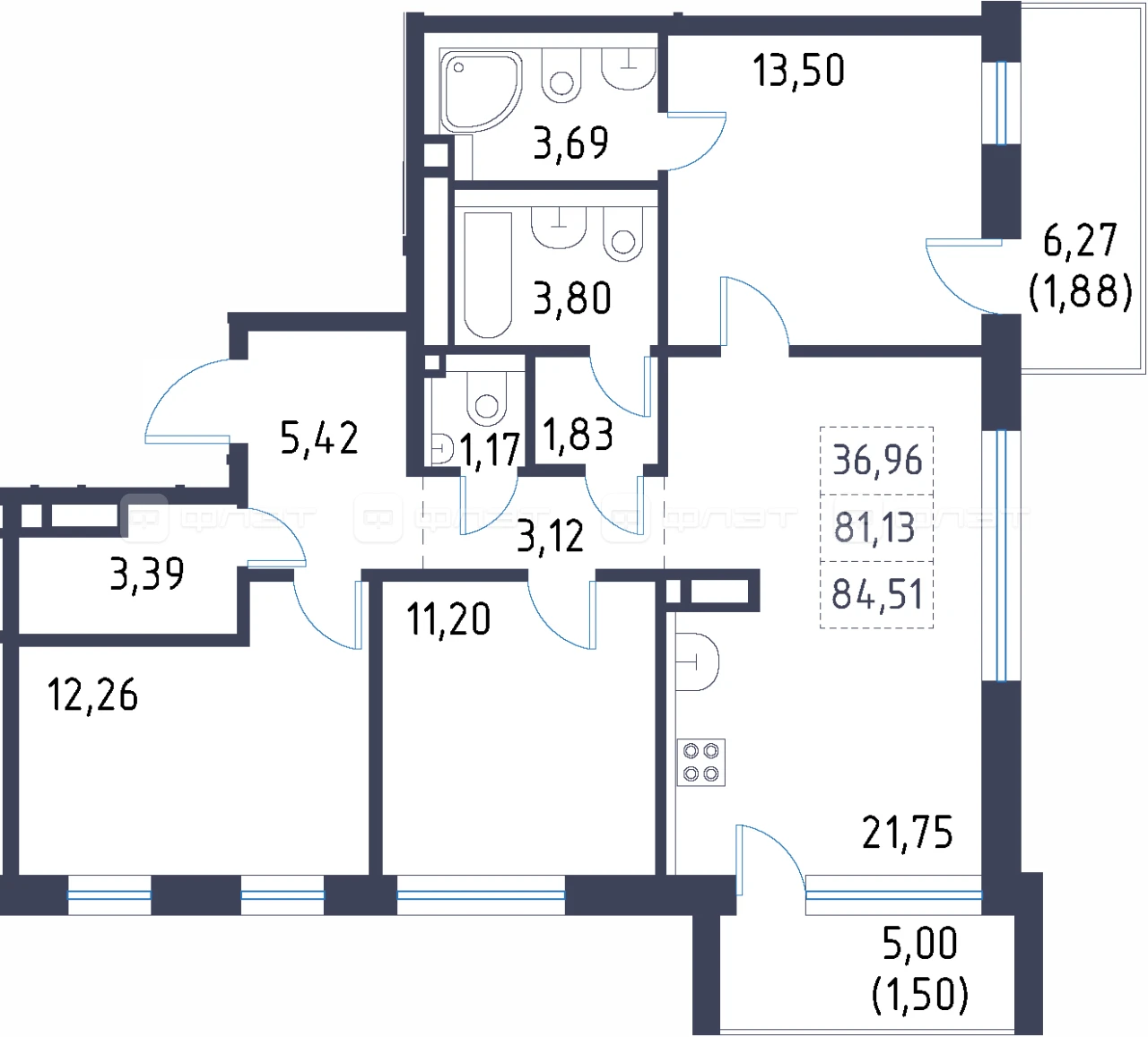 - 84.51/36.96/21.75 м²