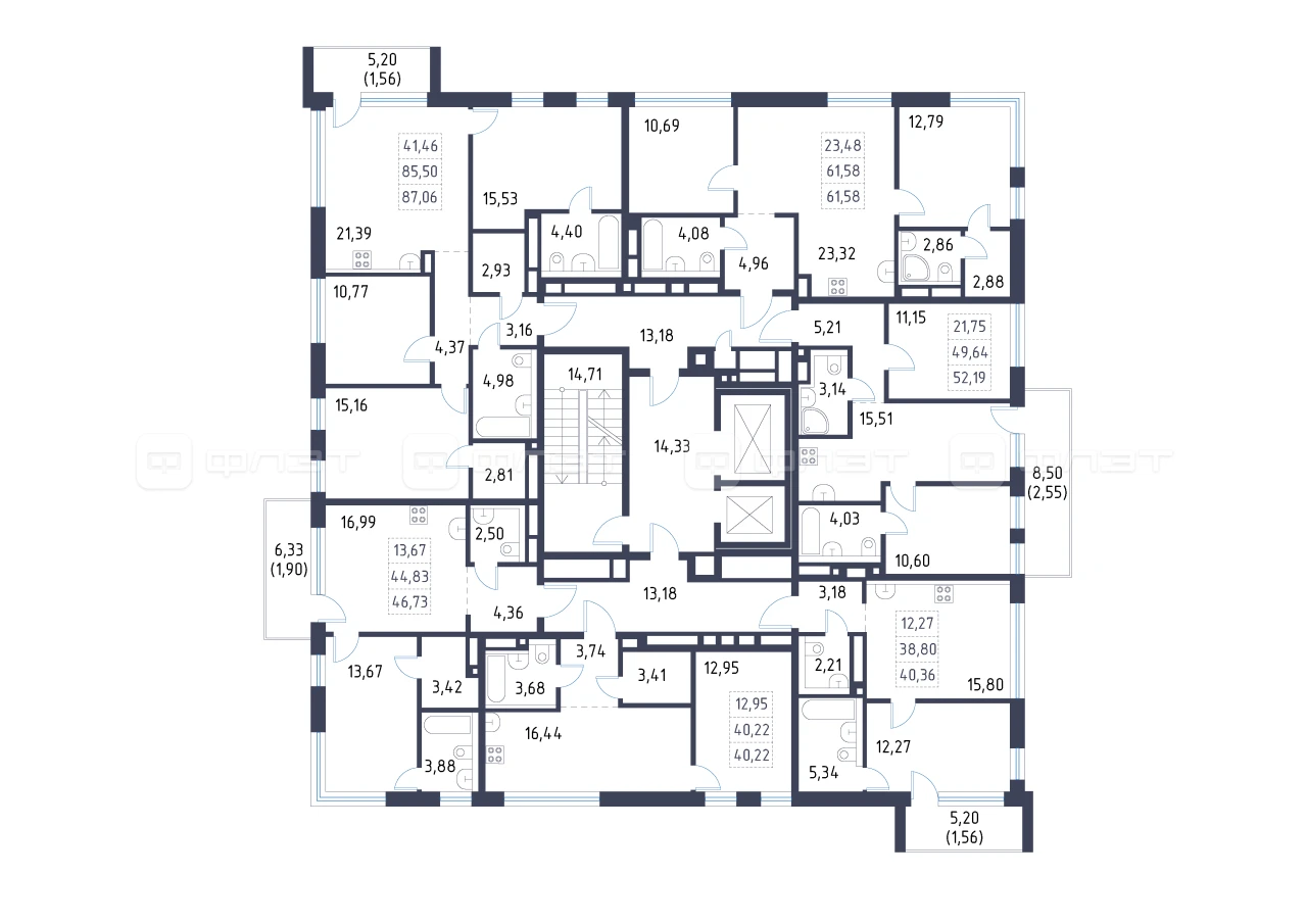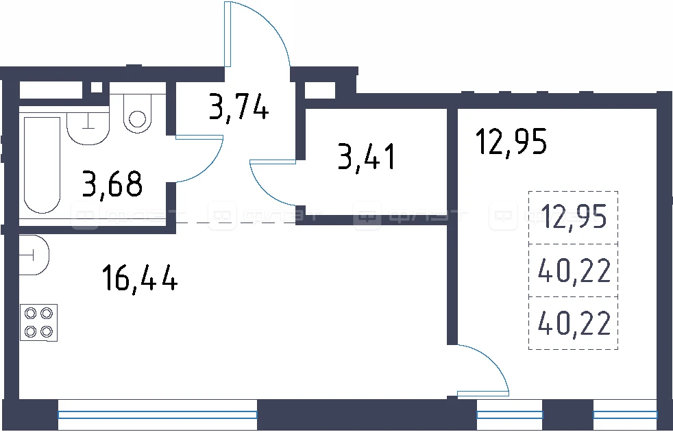 - 40.22/12.95/16.44 м²