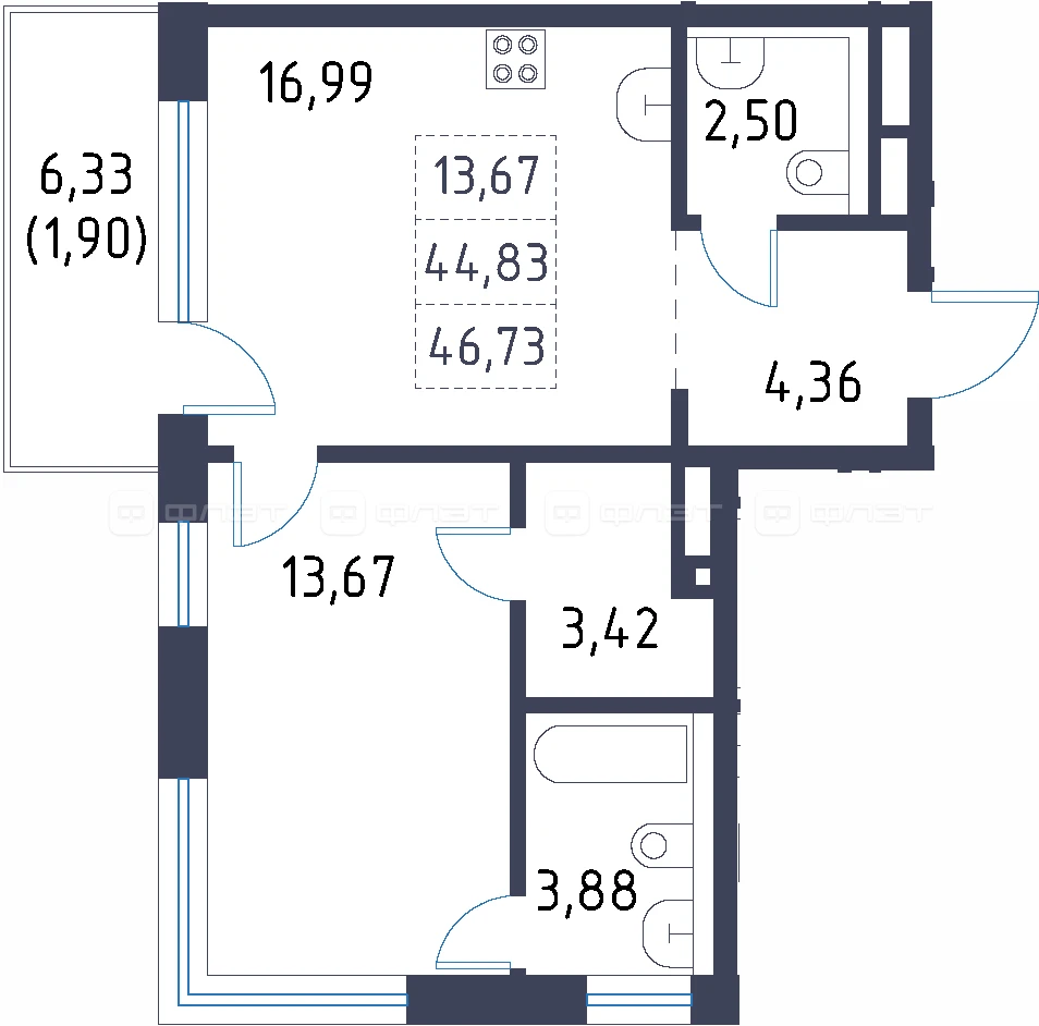 - 46.73/13.67/16.99 м²