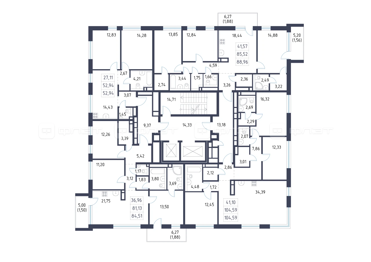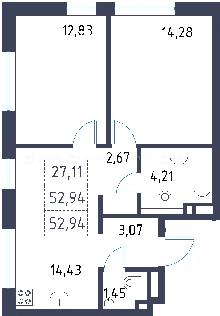 - 52.94/27.11/14.43 м²